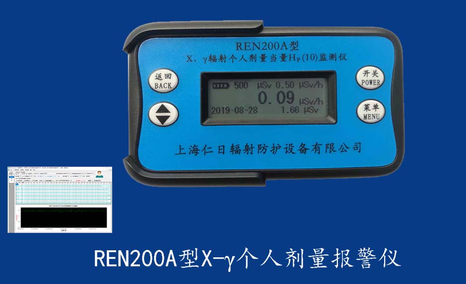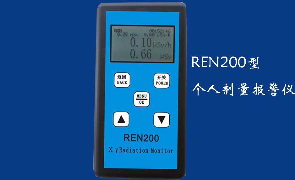 REN200A型X、γ輻射個(gè)人劑量當(dāng)量HP(10)監(jiān)測(cè)儀(簡(jiǎn)稱(chēng):個(gè)人劑量報(bào)警儀)內(nèi)置高靈敏度蓋格計(jì)數(shù)管為探測(cè)器,主要用來(lái)監(jiān)測(cè)各種放射性工作場(chǎng)所的X、γ以及硬β射線的輻射,具有響應(yīng)快,測(cè)量范圍寬的特點(diǎn)。能顯示工作場(chǎng)所的劑量當(dāng)量率和累積劑量,更換電池時(shí),日期及累積數(shù)據(jù)能永久保存。可選配RenRiPersonal個(gè)人劑量管理軟件,該軟件可存儲(chǔ)多個(gè)人的歷史數(shù)據(jù),能記錄日累積、月累積、年累積、輻照時(shí)長(zhǎng)、計(jì)算平均劑量率、扣除或不扣除本底輻射,且以文字和圖譜的方式展現(xiàn)數(shù)據(jù)。廣泛應(yīng)用于核電站、加速器、鋼鐵、化工、同位素應(yīng)用、工業(yè)X、γ無(wú)損探傷、放射醫(yī)療、鈷源治療、γ輻照、放射性實(shí)驗(yàn)室、核設(shè)施周?chē)h(huán)境監(jiān)測(cè)等領(lǐng)域中的工作人員進(jìn)行個(gè)人安全防護(hù)監(jiān)測(cè)及放射性提示。&nb